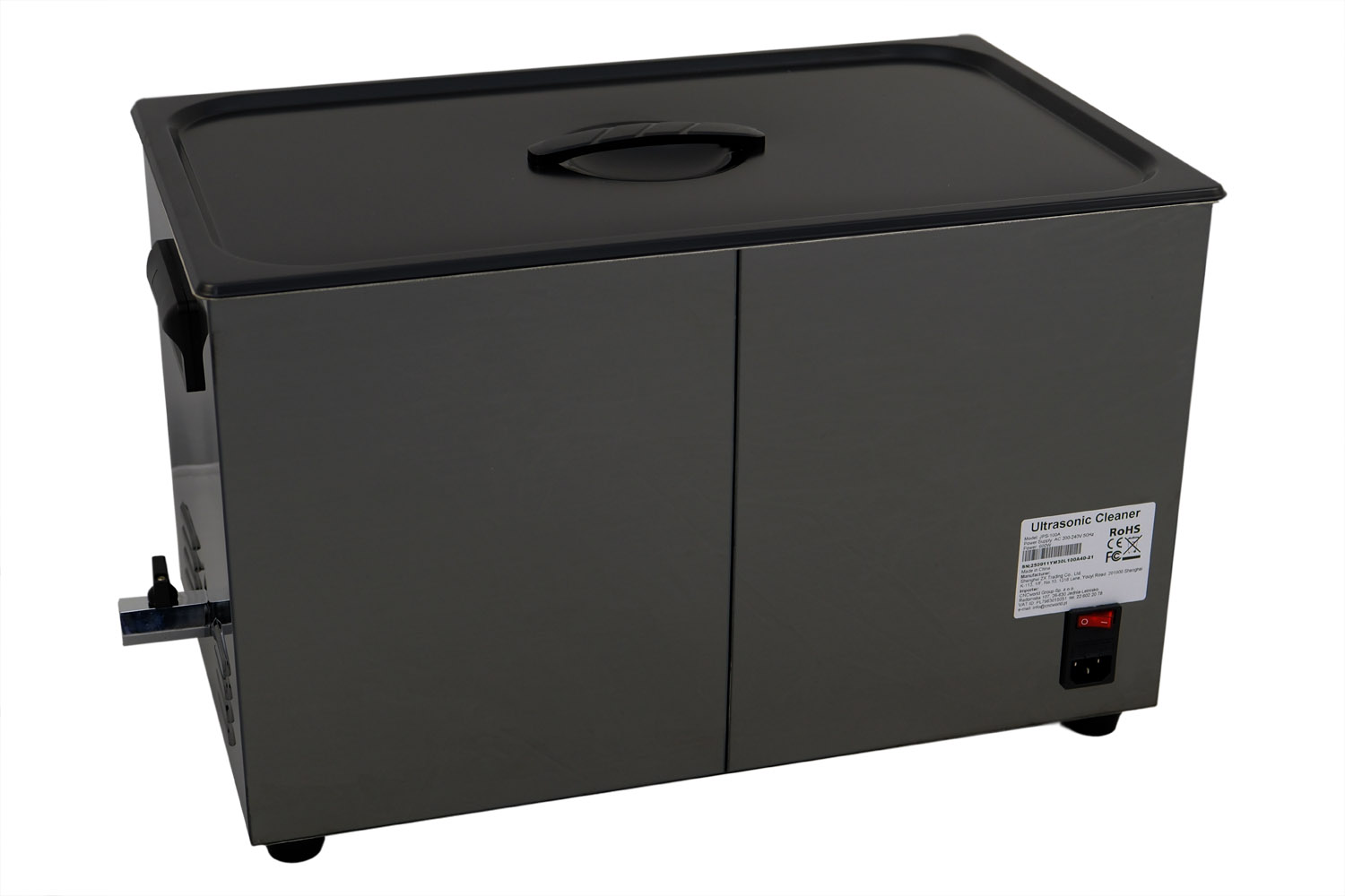 Ultraljudstvätten GX100A är utrustad med en tank av högkvalitativt rostfritt stål SUS304 med en volym på 30 liter, en ultraljudseffekt på 600 W och en värmeeffekt på 500 W.