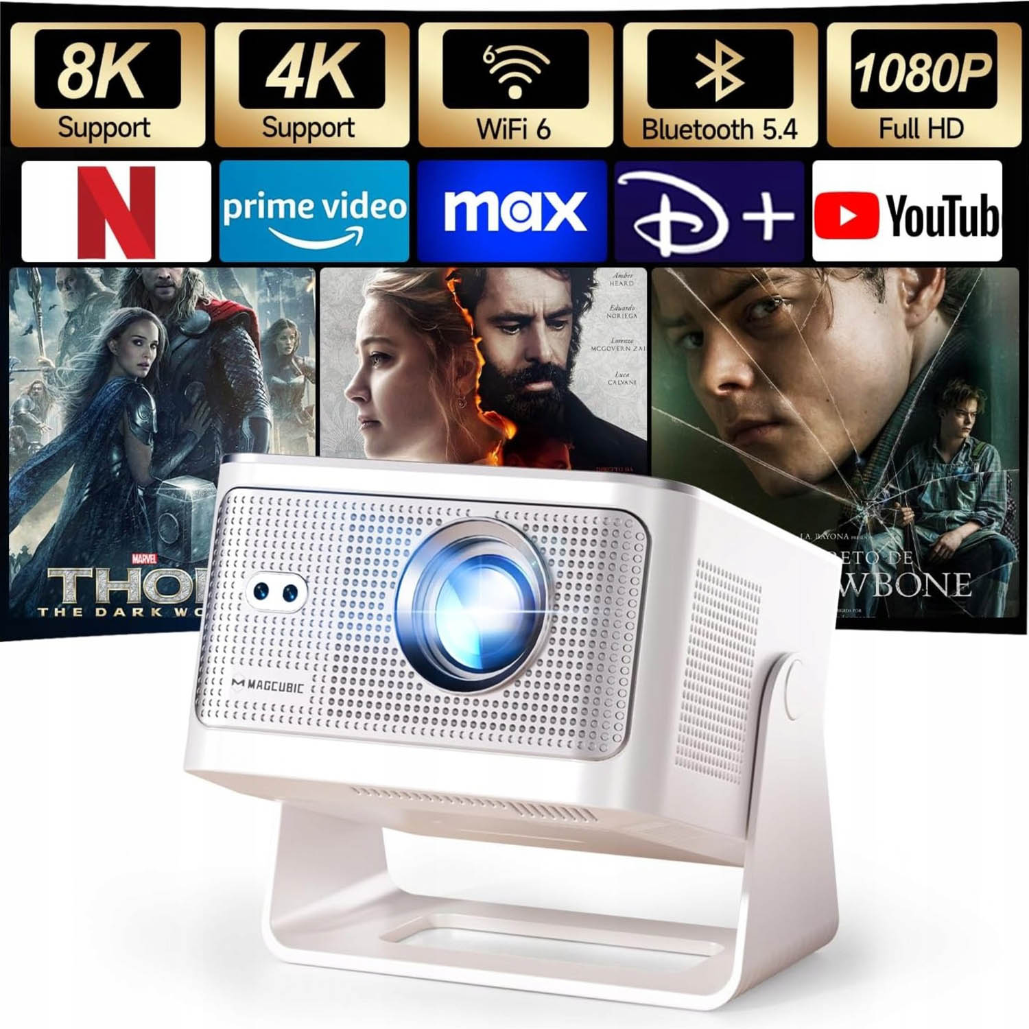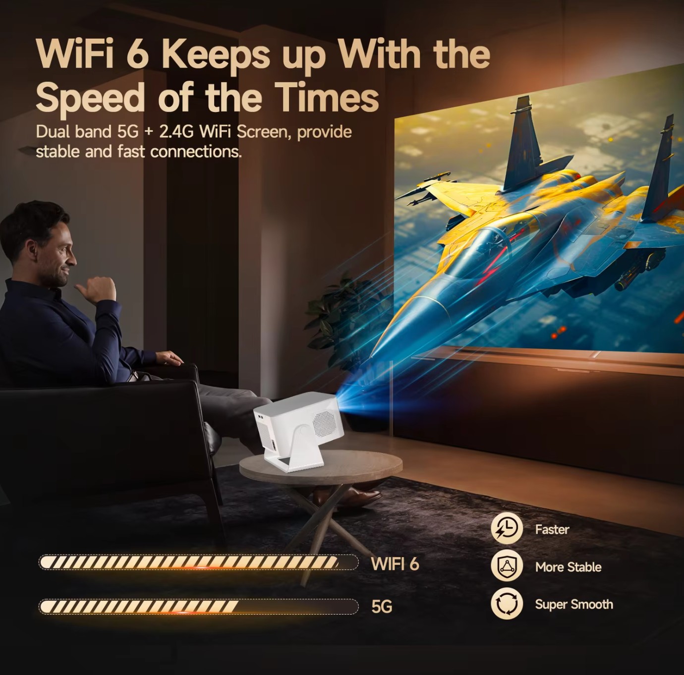 ✅ Ja, projektorn har Bluetooth 5.4, vilket möjliggör anslutning av trådlösa högtalare eller hörlurar.